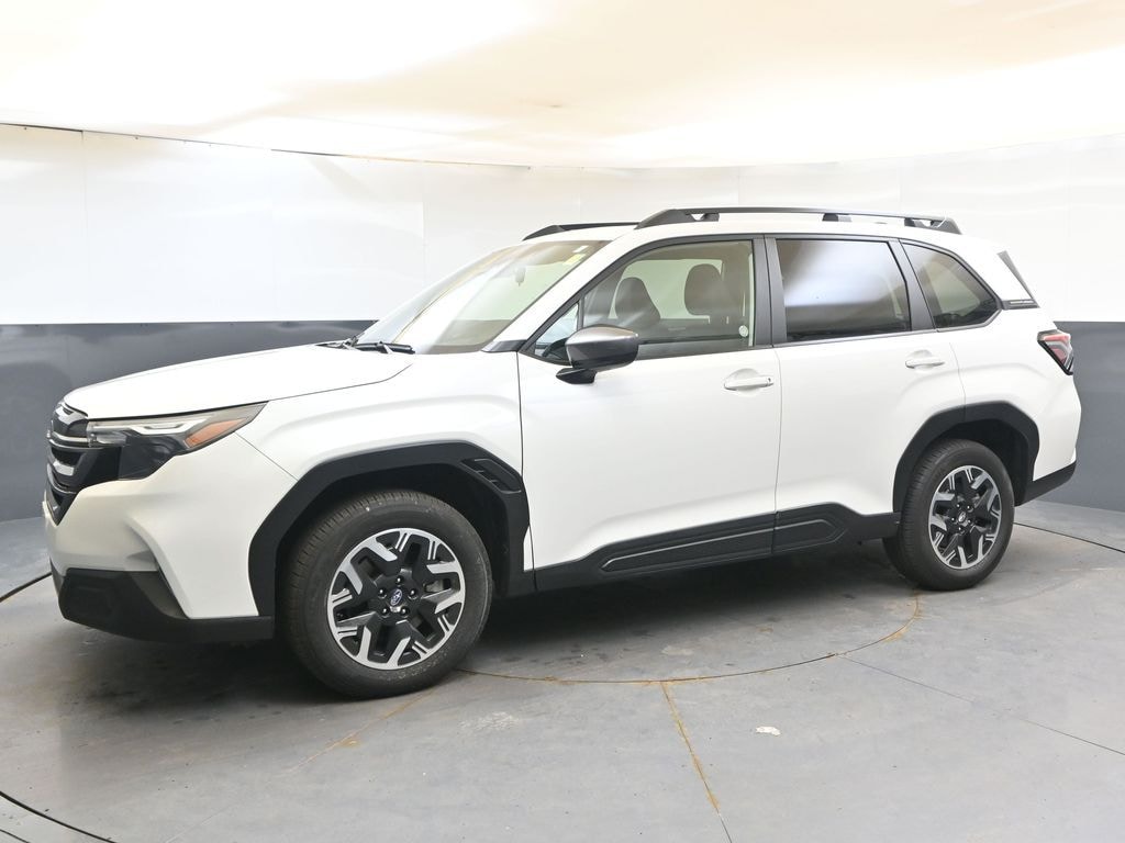 2025 Subaru Forester Premium, Crystal White Pearl, Android Auto, Apple CarPlay, EyeSight Driver Assist Technology, Lane Departure Warning, 180-hp 2.5-liter 4-cylinder SUBARU BOXER engine, Keyless Access with Push-Button Start, Qi wireless smartphone charging pad, Adaptive Cruise Control with Lane Centering, Lineartronic CVT, AWD, Black Cloth, AM/FM radio: SiriusXM with 360L, Automatic Emergency Steering, Automatic temperature control, Blind-Spot Detection (BSD)/RCTA System, Dual front side impact airbags, Exterior Parking Camera Rear, Front fog lights, Heated door mirrors, Heated Front Bucket Seats, Outside temperature display, Power driver seat, Power moonroof: Panoramic, Power Rear Gate, Radio: Subaru 11.6" Multimedia Plus System, Telescoping steering wheel, Wheels: 17" x 7.0 J Dark Metallic Aluminum-Alloy.
