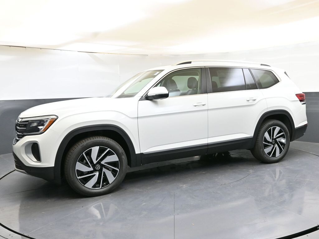 2025 Volkswagen Atlas 2.0T SEL, Opal White Pearl, Android Auto, Apple CarPlay, 2.0L TSI 16-valve DOHC turbo 4-cylinder engine, Adaptive Front Lighting System, Trailer hitch (5,000 lb. towing capacity), 2nd-Row Dual Captain's Chairs Package, Park Distance Control, front & rear, Dynamic Road Sign Display, Adaptive Cruise Control, Lane Keeping System, Blind Spot Monitor, Rear Traffic Alert, Forward Collision Warning & Automatic Emergency Braking w/ Pedestrian & Cyclist Monitoring, Volkswagen Digital Cockpit Pro, Remote Engine Start, Advanced keyless access w/ push-button engine start, Wireless Charging, 8-Speed Automatic, AWD, Titan Black w/perforated vienna leather seating surfaces, 20" 2-tone machined alloy wheels, 3rd row seats: split-bench, auto-dimming rearview mirror with HomeLink Connect, Automatic temperature control, Dual front side impact airbags, Exterior Parking Camera Rear, Front fog lights, Heads-Up Display, heated and Actively ventilated front bucket seats, Heated door mirrors, Heated rear seats, Heated steering wheel, Memory seat, Navigation System, Power Liftgate, Power moonroof: Panoramic, Rain sensing wipers, Telescoping steering wheel.